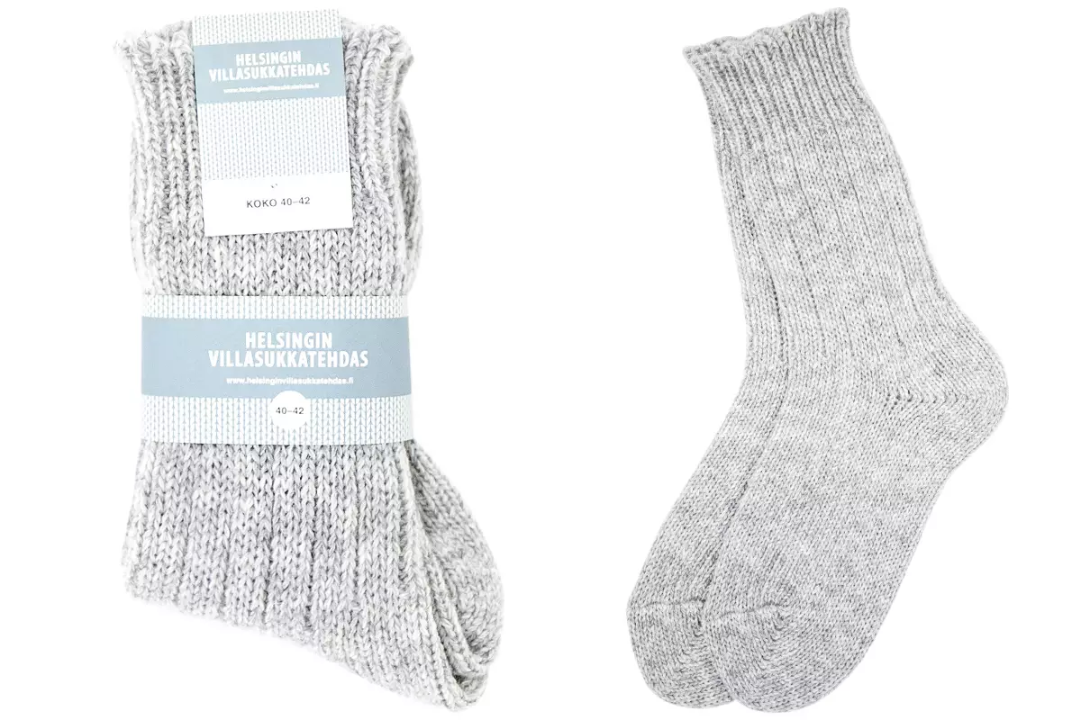 Lopputuloksena syntyy hyvin suomalaiseen jalkaan istuva, lämmin ja kestävä villasukka.