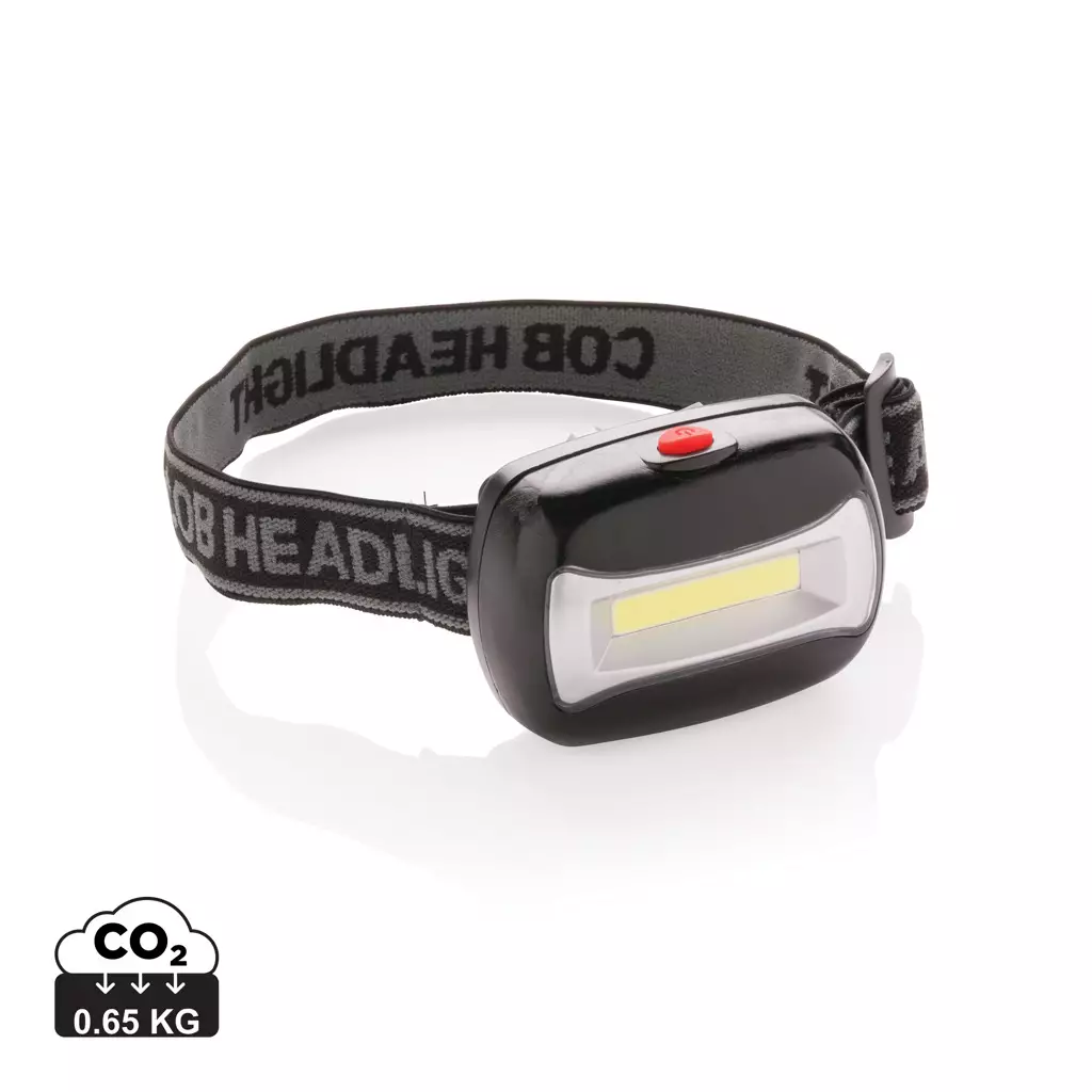ABS muovista valmistettu otsalamppu erittäin kirkkaalla COB valolla. Otsahihna on säädettävissä eri kokoihin. Sisältää paristot. Merkkaus tampopainatuksella.