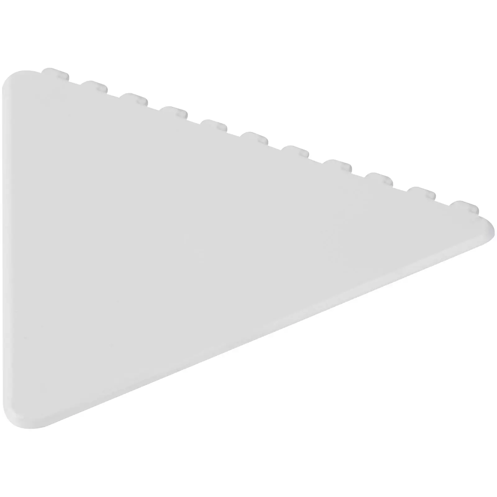 Kolmionmuotoinen jääkaavin tuulilasin puhdistukseen, suuri logomerkintäalue. Kolmion kaikkia sivuja voidaan käyttää jään poistamiseen. Valmistettu Isossa-Britanniassa kierrätetystä muovista. Materiaalissa voi olla struktuuria kierrätetyn materiaalin ominaisuuden vuoksi.