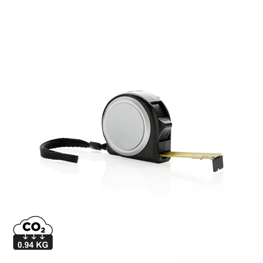 Kompakti ABS-materiaalista tehty mittanauha, jossa on pidike ja rannehihna. Nauha 5 metriä/19 mm ja sisältää koukun.
