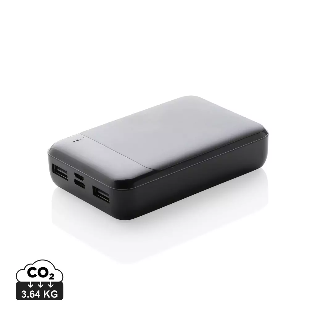 10000mAh:n taskukokoinen virtapankki, jonka kotelo on valmistettu RCS sertifioidusta ABS muovista. RCS (Recycled Claim Standard) on standardi, jolla varmennetaan tuotteen kierrätetty materiaali koko toimitusketjun ajan. Kierrätetyn materiaalin kokonaismäärä: 20% perustuen tuotteen painoon. RCS-standardia käytetään, kun osa tuotteesta on valmistettu kierrätetystä materiaalista Täyteenladattuna virtapankki mahdollistaa puhelimen latauksen jopa viisi kertaa. Virtapankissa on pitkäkestoinen 10000mAh:n litiumpolymeeriakku. Virran merkkivalot kertovat, milloin on aika ladata tuote uudelleen. Mikro USB sisääntulo 5V/2A; tyypin C sisääntulo 5V/2A; USB ulostulo 5V/2A; tuote ja lisätarvikkeet PVC-vapaita. Sisältää PVC-vapaan kierrätetystä TPE:stä valmistetun latauskaapelin.