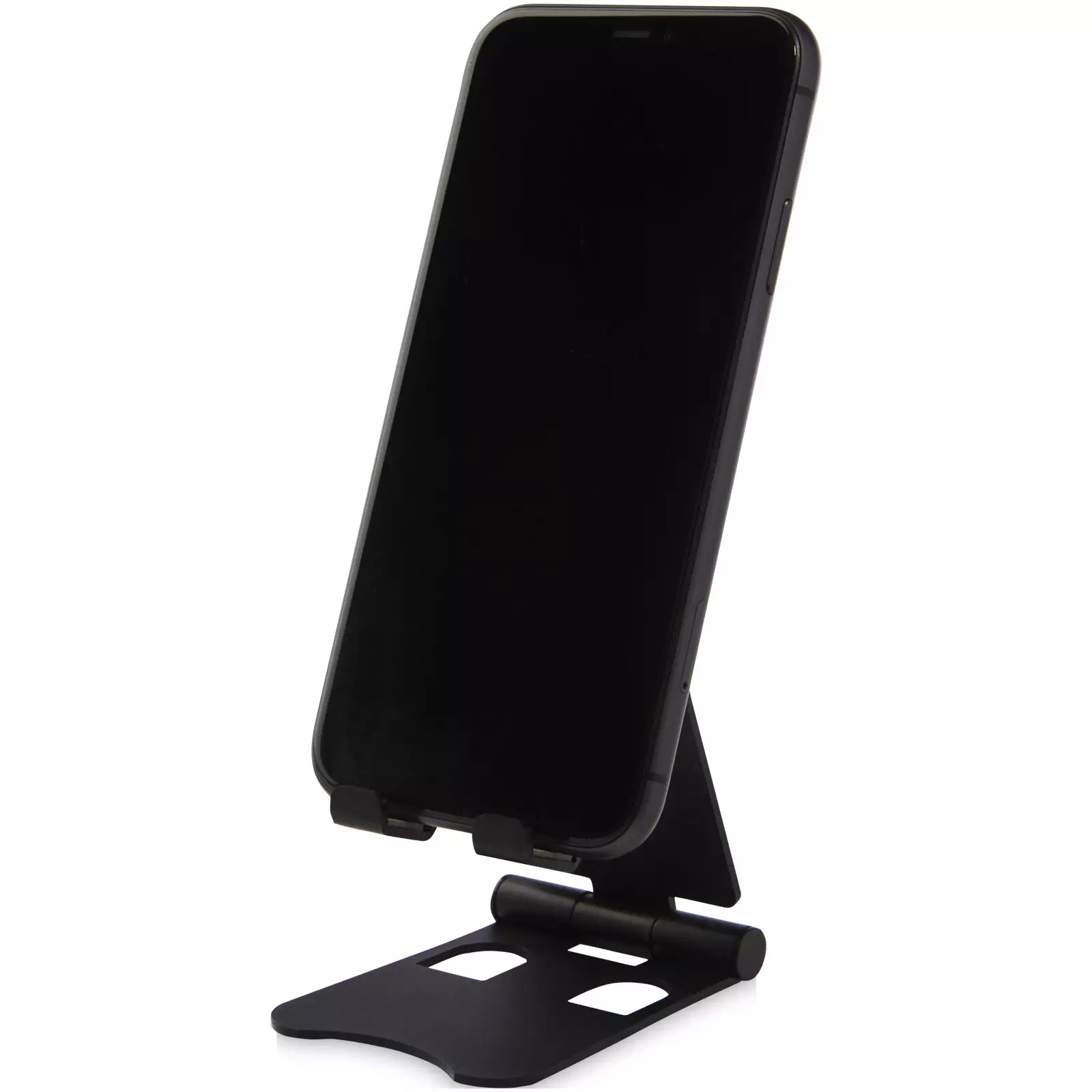 Taitettava puhelinjalusta alumiinista. Sekä korkeutta että katselukulmaa voidaan säätää, mikä tekee lisälaitteesta täydellisen neuvottelupuheluihin, lähetyksiin, suoratoistoon tai ihan vain elokuvien katseluun. Pohja on liukumista estävää materiaalia, joka estää sitä liikkumasta. Toimitetaan korkealaatuisessa voimapaperipakkauksessa, jossa on värikäs tarra.