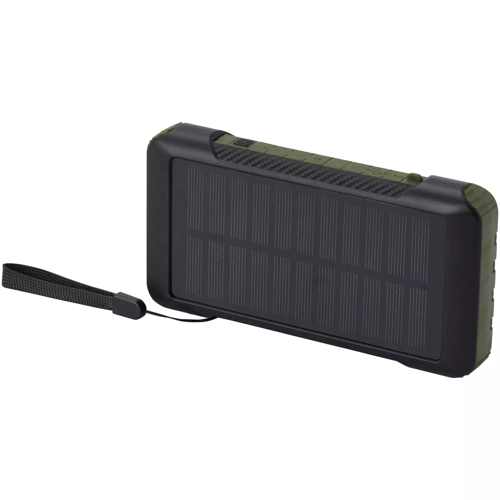10 000 mAh:n aurinkovoimalla ladattava Soldy-varavirtalähde on valmistettu kierrätetystä RCS-muovista, ja se on ihanteellinen lataukseen ulkona. Siinä on käsikäyttöinen kampidynamo, joka tuottaa tehoa manuaalisesti siltä varalta, että virta loppuu eikä auringonvaloa ole. Varavirtalähdettä voidaan ladata myös laitteen Type-C- tai micro-USB-portin kautta. Tässä varavirtalähteessä on sisäänrakennetut latauskaapelit, joissa on Type-C-, iOS-, USB-A- ja mikro-USB-liittimet, joten sen avulla voi ladata useimpia älypuhelimia, kameroita, varavirtalähteitä, kuulokkeita jne. Varavirtalähteen enimmäislähtöteho on 2,4 A per portti. Tulotehon raja on 2 A. Mukana tulee käyttöohje ja 30 cm:n USB-A to Type-C -latauskaapeli, ja varavirtalähde on pakattu 100-prosenttisesti kierrätettyyn voimapaperilaatikkoon.