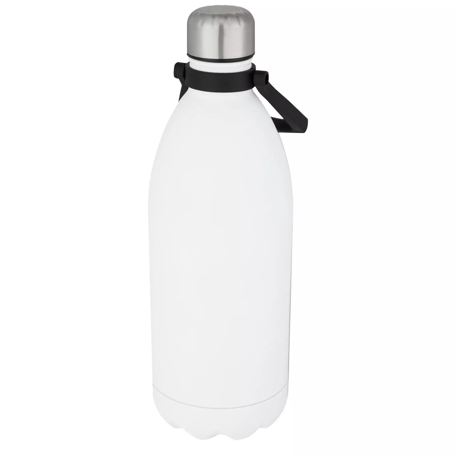 Hyvin suuri, tyhjiöeristetty ruostumattomasta teräksestä valmistettu pullo, joka on edustavasti muotoiltu ja helppo kantaa siihen kuuluvalla kätevällä kahvalla. Eristetty 18/8 ruostumaton teräs pitää juoman kuumana tai kylmänä useita tunteja. BPA-vapaa, testattu ja hyväksytty elintarviketurvallisuslainsäädännön (LFGB) mukaisesti. Testattu ja hyväksytty ftalaattipitoisuuden osalta REACH-asetusten mukaisesti. Tilavuus on 1,5 litraa. Suositellaan pestäväksi käsin. Toimitetaan kierrätetystä kartongista valmistetussa lahjapakkauksessa.