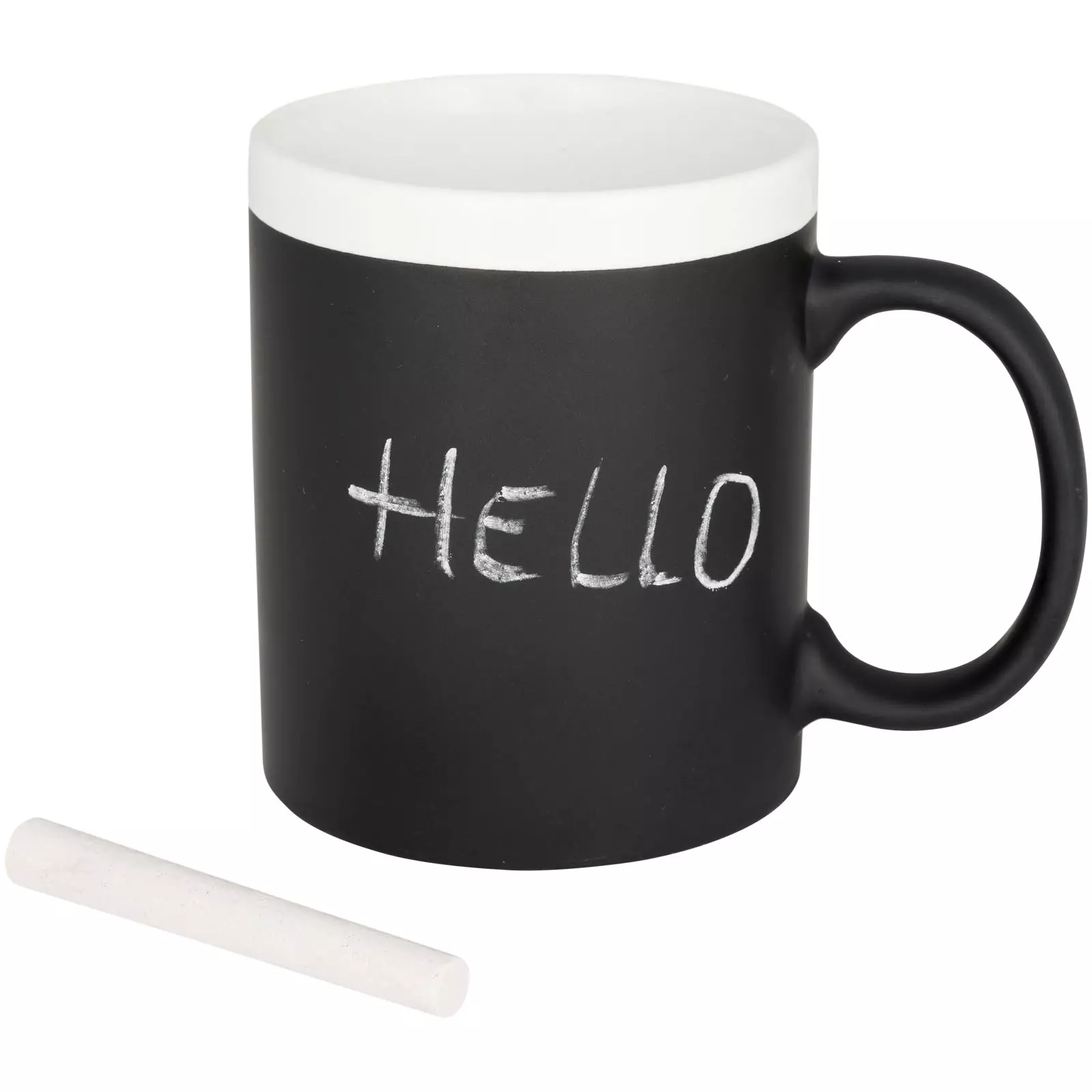 Tästä mukista saa yksilöllisen kirjoittamalla liitutaulupinnalle liidulla. Mukana on liitu. EN12875-1 vaatimusten mukainen; konepestävä, myös koristeltuna. Tilavuus on 330ml. Esillepano valkoisessa pahvilaatikossa.