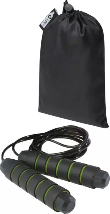 Ammattimainen hyppynaru aikuisille ergonomisesti muotoilluilla pehmeillä vaahtomuovikahvoilla, jotka tarjoavat tukevan ja mukavan otteen treenin aikana. Narun pituus on 310 cm, mikä mahdollistaa helpon hyppäämisen jopa 195 cm:n pituisille aikuisille. Narun pituus on säädettävissä, ja siinä on sisäänrakennettu, laadukas, 360° pyörivä, nopea kuulalaakeri, joka varmistaa tasaisen, vaivattoman pyörimisen ja välttää sotkeutumisen. Mukana toimitetaan kierrätetystä PET-muovista valmistettu säilytyspussi. Merkkaus silkkipainatuksella pussiin.