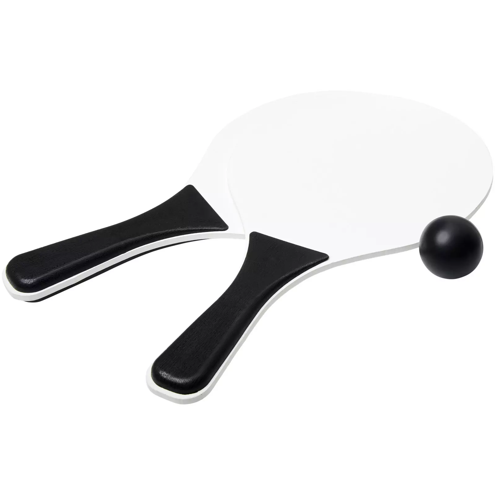Rantapeli hauskanpitoon. Sisältää 2 mailaa ja pallon. Valmistettu MDF-puusta, kahva on värillistä PP-muovia. Merkkaus silkkipainatuksella.