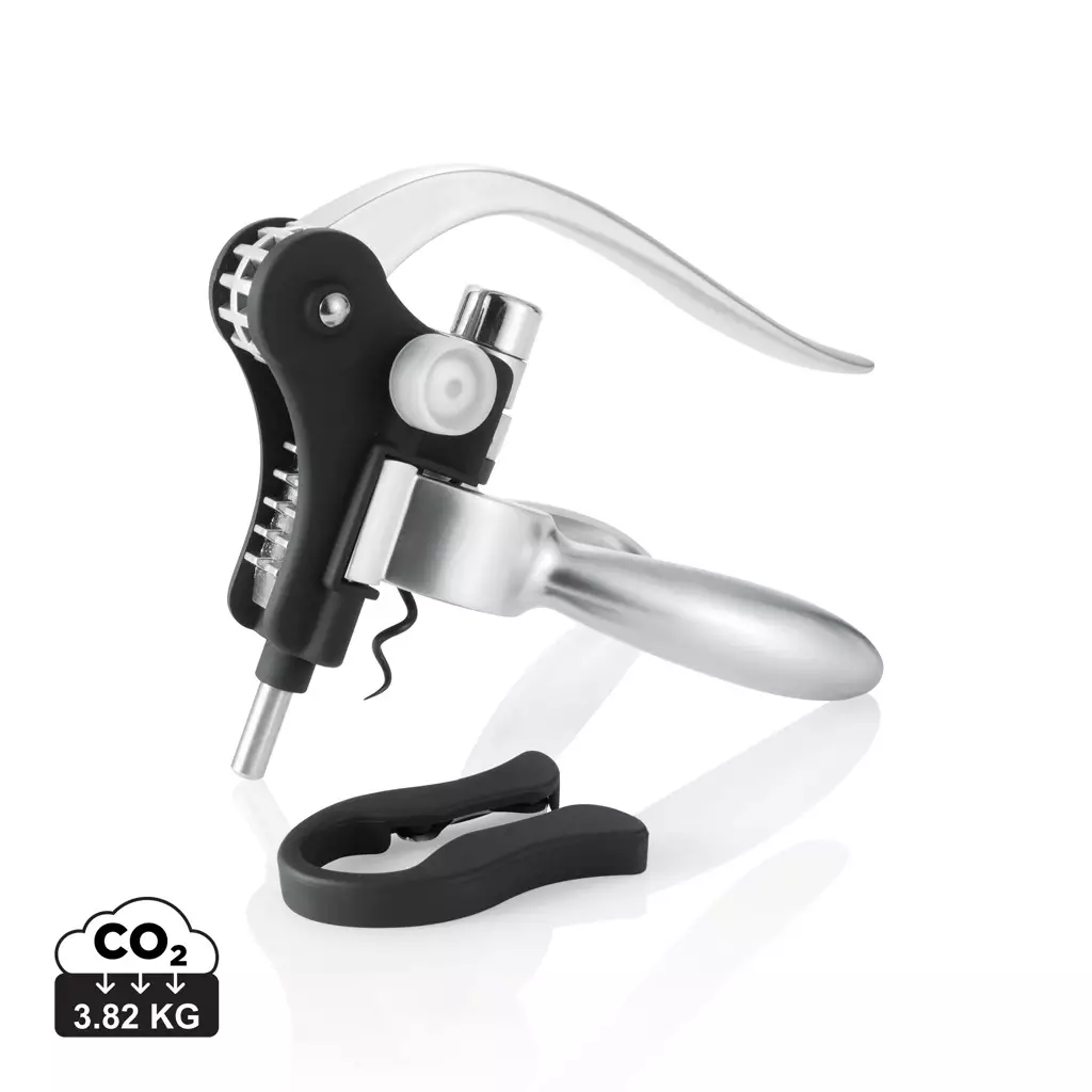 Tyylikäs alumiininen Executive viinipullonavaaja toimii helppokäyttöisellä vipumekanismilla. Teflonpinnoitettu korkkiruuvi toimitetaan lahjapakkaukseesa, jossa on mukana sinettileikkuri.... Lue lisää