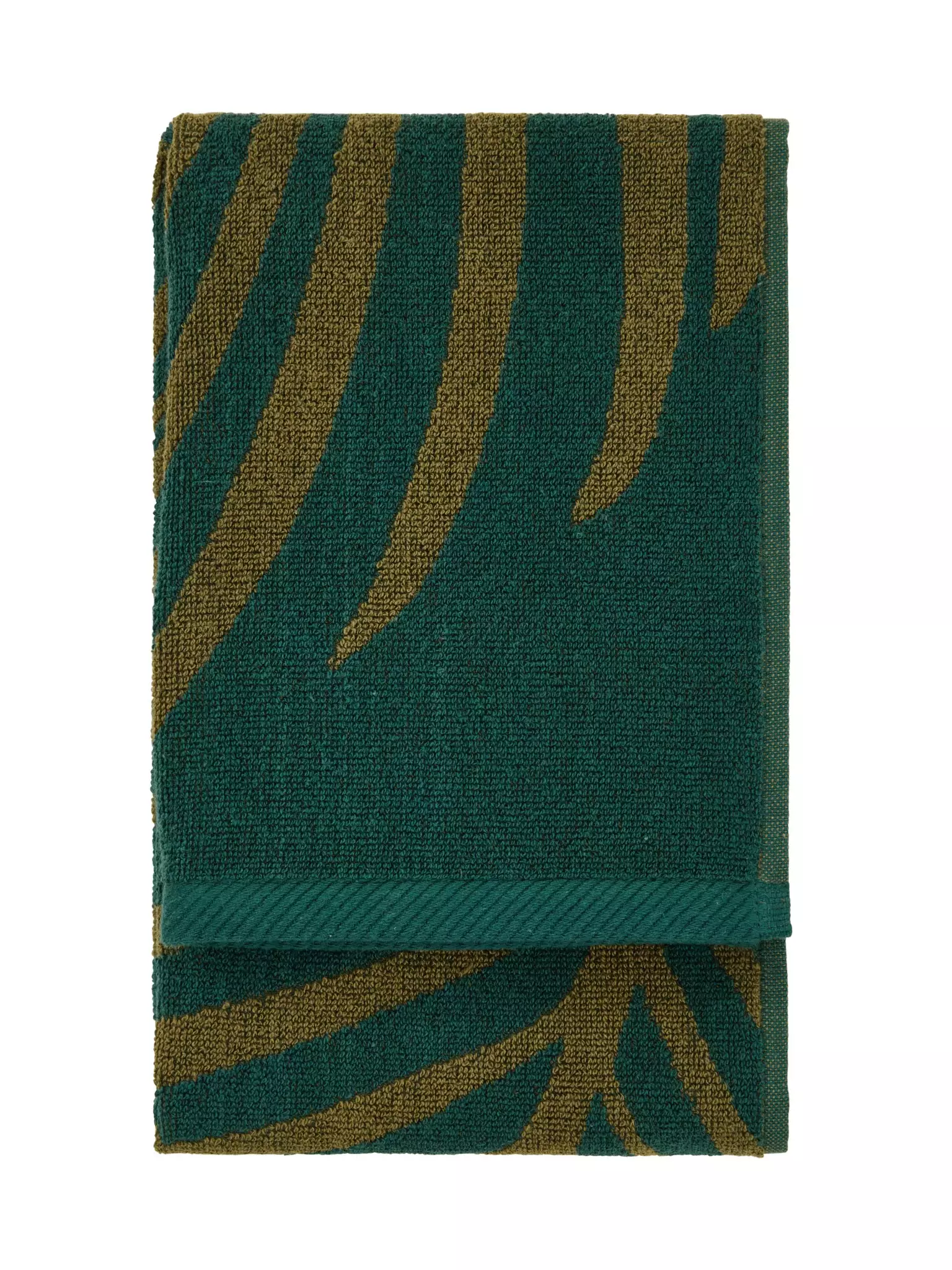 Arjessa on aina paikka luottopyyhkeelle – pyyhkelle, joka kestää käyttöä, on imukyvyltään mainio ja ihastuttaa tuntumallaan. Tässäpä olisi juuri sellainen pyyhe! 100 % luomupuuvillasta valmistettu Ikimetsä-pyyhe on kestävää lankavärjättyä laatua. Siinä ohut kerrattu lanka on yhdistetty tarkoin harkittuun kudontarakenteeseen. Lopputuloksena on pyyhe, joka kuivaa hyvin ja kestää kovaakin kulutusta. GOTS-sertifioitua pyyhettä koristaa Riina Heinosen suunnittelema kuosi, jonka innoitus on nimensä mukaisesti peräisin Suomen ikimetsistä ja niiden monimuotoisesta luonnosta. Yhdistä kylpypyyhe yhteensopiviin Ikimetsä-käsipyyhkeisiin, jos haluat kylppäriin yhdenmukaisen kokonaisuuden.