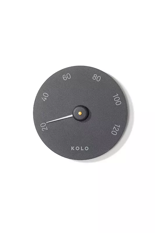 KOLO löylymittari on valmistettu alumiinista. Pyöreä mittari sopii jokaiseen saunaan.