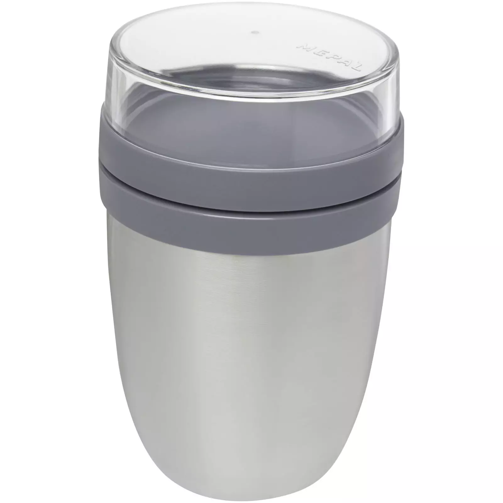 Lounasrasia, jossa on kaksi lokeroa, jotta ainesosat voidaan pitää erillään. Molemmissa lokeroissa on erillinen kansi, jotta ainesosat eivät sekoittuisi. Pitää sisällön kuumana 10 tuntia tai kylmänä 16 tuntia. Jotta ruoka pysyisi kuumana tai kylmänä mahdollisimman kauan, on suositeltavaa huuhdella lounasastia kuumalla tai jääkylmällä vedellä ennen täyttämistä. Ylimmän läpinäkyvän osaston tilavuus on 200 ml, mikä tarkoittaa, että siihen mahtuu noin 75 grammaa kiinteää ruokaa. Pohjasäiliön tilavuus on 500 ml. Valmistettu kestävästä materiaalista ja astian ulkopinta pysyy viileänä ja kuivana. Käsinpesu on suositeltavaa. Korkin muoviosat voidaan laittaa astianpesukoneeseen. Vuotamaton. BPA-vapaa. 2 vuoden Mepal takuu.