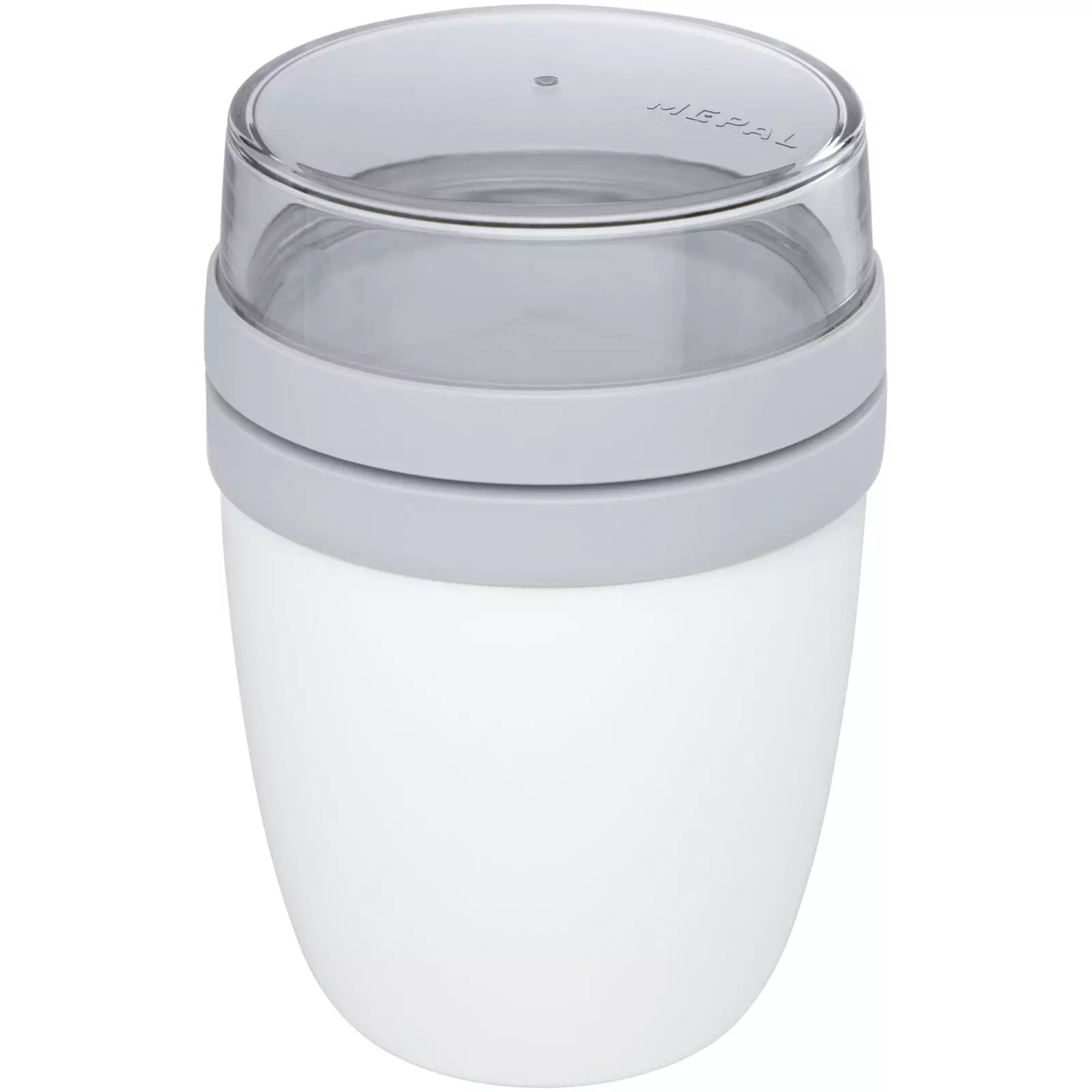 Lounasrasia, jossa on kaksi eri osastoa, jotta ainesosat voidaan pitää erillään. Molemmissa osastoissa on erillinen kansi, joten ne pysyvät puhtaina. Ylimmän läpinäkyvän osaston tilavuus on 200 ml, mikä tarkoittaa, että siihen mahtuu noin 75 grammaa kiinteää ruokaa. Pohjasäiliön tilavuus on 500 ml. Valmistettu kestävästä materiaalista, ja sitä voidaan käyttää pakastimessa, mikroaaltouunissa (poista kansi) ja astianpesukoneessa. Ylintä läpinäkyvää säiliötä ei saa laittaa mikroaaltouuniin. Vuotamaton. BPA-vapaa. 2 vuoden Mepal takuu.