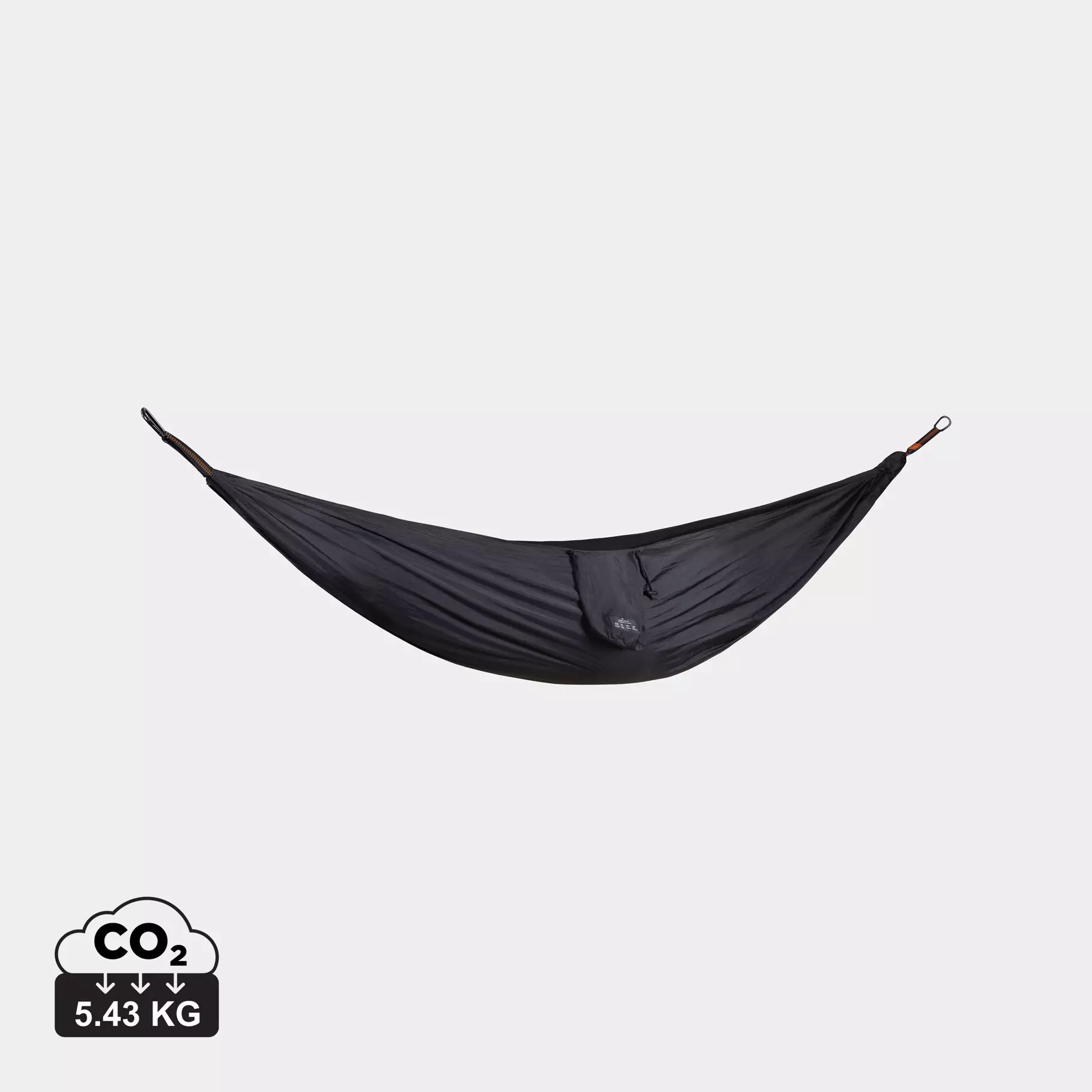 Laadukas Nordic Driftin ulkoriippumatto on kevyt, kompakti ja helppo kuljettaa mukana. Valmistettu 44 % GRS-sertifioidusta kierrätetystä nailonista ja se pakataan kätevästi kuljetuspussiin. Logomerkkaus tehdään painatuksella pussiin.
