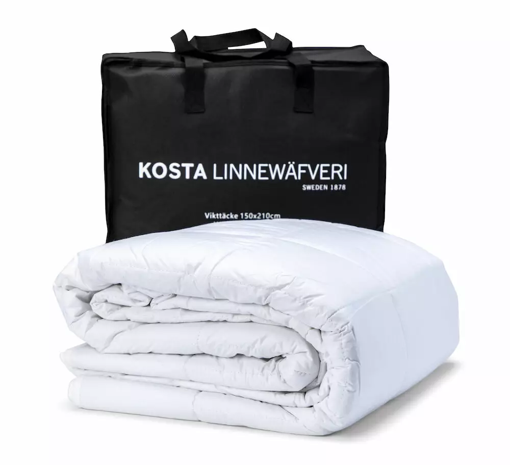 Kosta Linnewäfveri painopeitto 11 kg auttaa saamaan hyvät ja rauhalliset yöunet. Raskaampi peitto laskeutuu hyvin ja muotoutuu kehon ympärille helposti. Käyttäjä tuntee olonsa rauhalliseksi ja vähemmän stressaavaksi. Suositus peittoa valitessa on että se olisi 7-12 % kehon painosta. Peitto tuo helpotusta univaikeuksiin. Peiton täytteenä on polyesterikuitua- ja mikrolasikuulia.