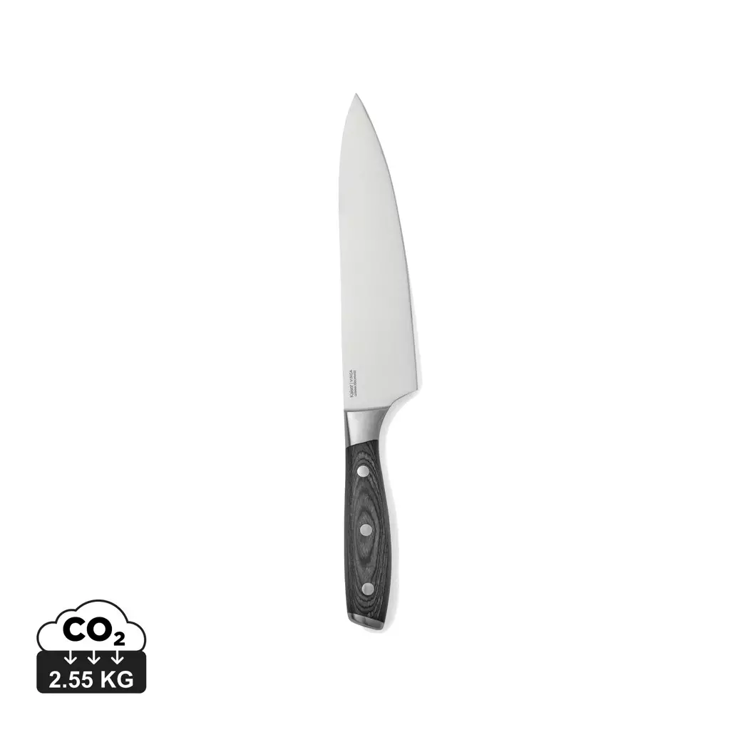 Laatuveitsi, joka on valmistettu kestävästä saksalaisesta teräksestä käyttäen optimaalista hiilen, kromin, molybdeenin ja vanadiumin seosta. Lopputuloksena erittäin hyvin leikkaava kokin paras ystävä. Kahva tyylikästä ja käteen hyvin istuvaa pakkawoodia.