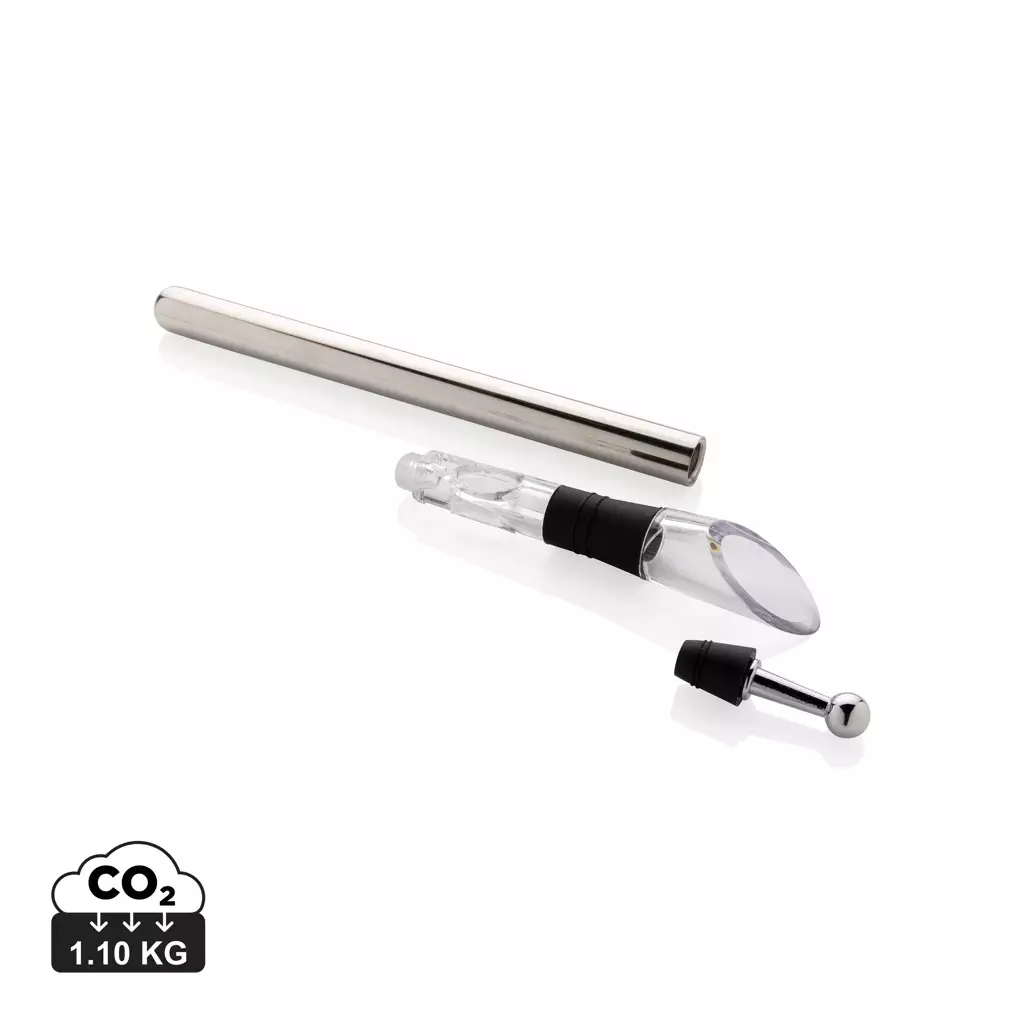 Tämä viini jäähdytysputki pitää esijäähdytetyn viinisi optimaalisessa juomalämpötilassa. Sinä ja vieraasi voitte nauttia viinistä ihanteellisessa lämpötilassa, eikä sinun tarvitse koskaan enää juoda lämpimää viiniä! Jäähdytä viini sisältä samalla kun läikkymisvarma kaataja sisäänrakennetulla ilmastimella varmistaa viinin tasaisen virtauksen ilman tippoja ja antaa viinisi hengittää täydellisyyteen. Laaja toiminnallisuus ja tyylikäs muotoilu tekevät tästä viinitarvikkeesta pakollisen jokaiselle viiniharrastajalle. Pakattu ylelliseen lahjapakkaukseen.