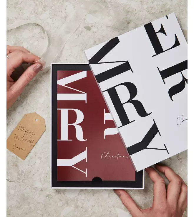 Lahjarasia saatavissa jouluisella "MERRY CHRISTMAS" tai "THANK YOU" kuosilla.