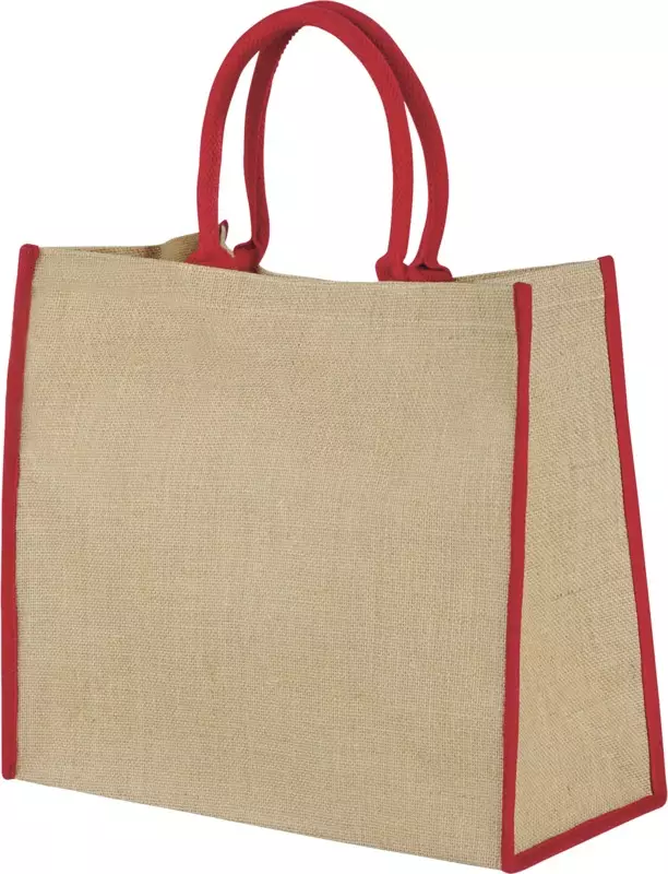 Harry juuttikassissa on värikkäät saumat ja samaan väriin sopivat kahvat.