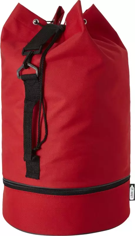 Vedenpitävä Retrend merimieslaukku on valmistettu kierrätetystä PET-muovista. Laukussa on tilava 20 litran päälokero, joka suljetaan kiristysnyörillä. Sivukahva ja säädettävä olkahihna... Lue lisää