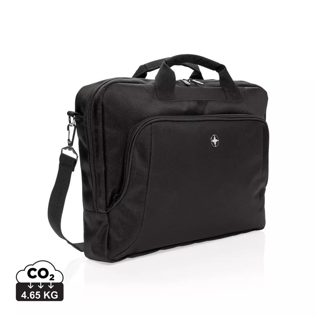 Ylellinen Swiss Peak olkalaukku 15.6” kannettavalle tietokoneelle ja tabletille. Pehmustettu kannettavan tasku, osastojohdoilleja latureille sekä vetoketjullinen etutasku puhelimelle ja varavirtalähteelle. Irroitettava ja säädettävä olkahihna. PVC-vapaa. Merkkaustapa: siirtokuvamerkkaus