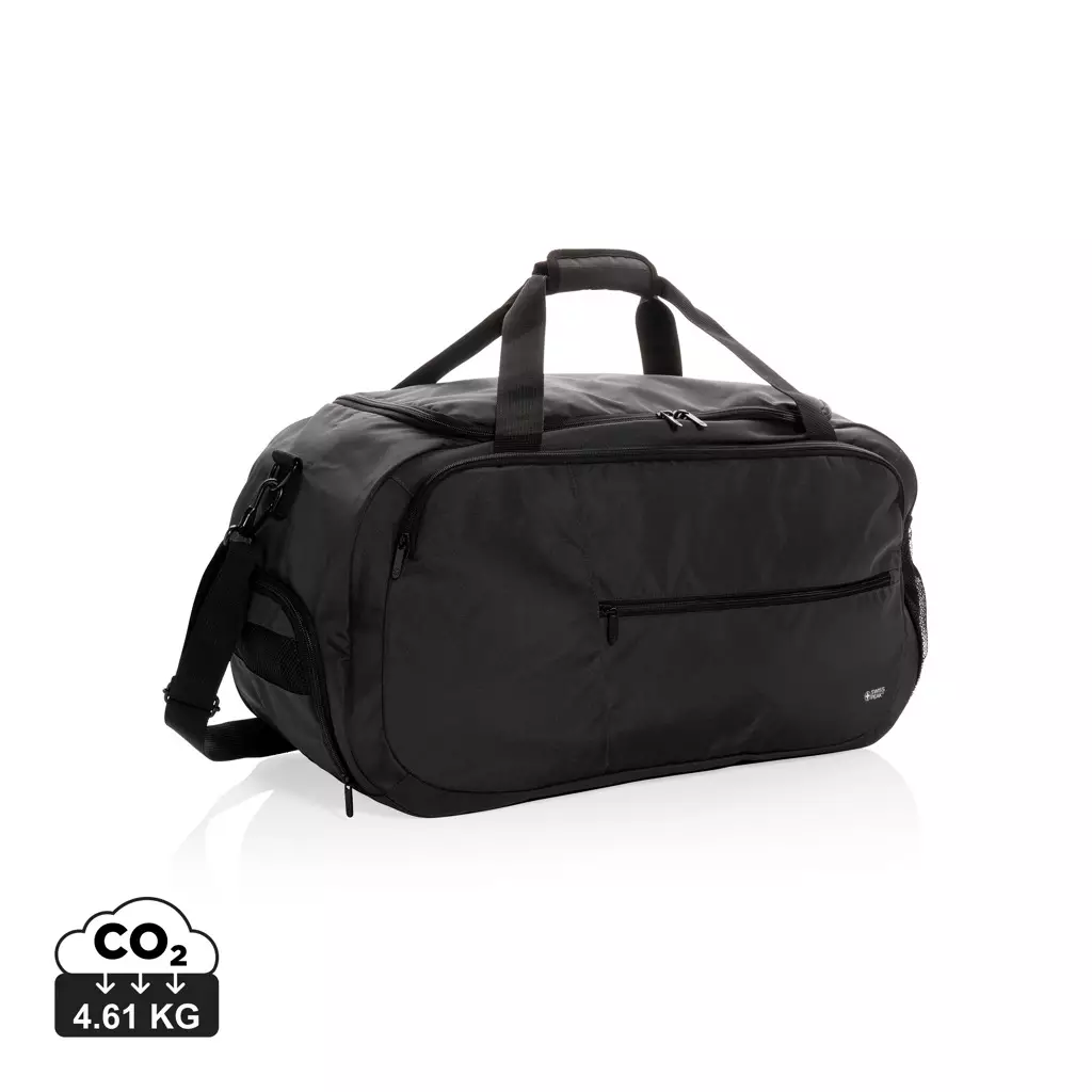 Swiss Peakin moderni ja sporttinen duffelilaukku on täydellinen valinta mukaan salille ja muihin harrastuksiin. Laukussa on suuri avausaukko, joten löydät tärkeimmät tavarasi nopeasti ja helposti. Laukun etuosassa on vetoketjutasku ja 2 ulkoista verkkotaskua esimerkikisi juomapulloille. Laukussa on pitkät hihnat, joiden avulla voit kantaa laukkua pitkäänkin olalla. Duffelilaukun ulko-osa ja sisävuoraus on valmistettu 100% kierrätetystä polyesteristä. Sisältää AWARE™ jäljitysainetta, jolla aidosti kierrätettyjen materiaalien käyttö todennetaan. Jokaisen laukun valmistuksessa uudelleenkäytetään 381kpl 0.5L PET pulloa. 2% jokaisen myydyn Impact -tuotteen voitosta lahjoitetaan Water.org -järjestölle. Merkkaustapa: brodeeraus, silkkipainatus tai siirtokuva