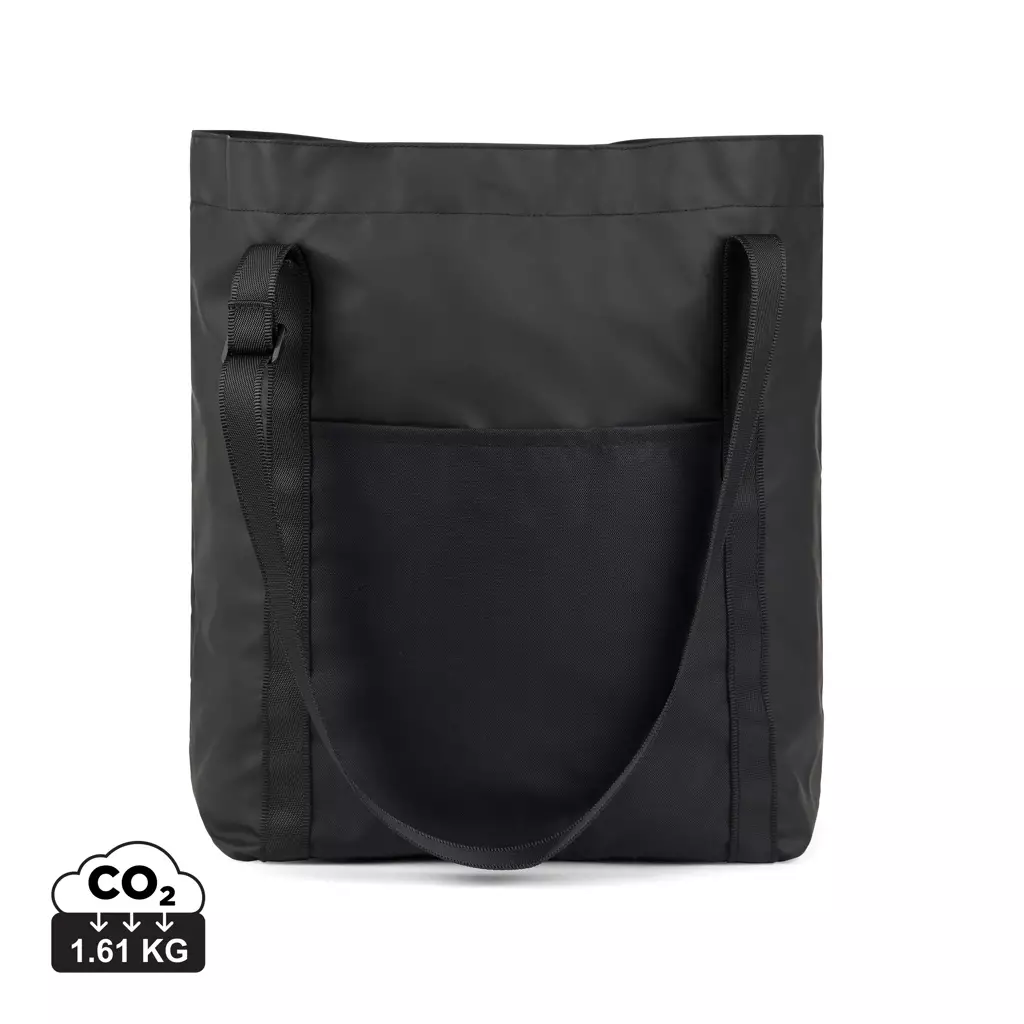 Vinga Livorno kassi on valmistettu erittäin kevyestä GRS-sertifioidusta polyesterista, jossa on kestävä PU-pinnoite. Laukku voidaan taitaa helposti kokoon ja sitoa remmillä, jolloin se voidaan säilyttää pienessä tilassa. Säädettävät hihnat mahdollistavat sen kantamisen kädessä tai olalla. Laukussa on ulkotasku ja pienempi sisätasku tärkeimmille tavaroillesi. Tämä tuote sisältää 51% GRS-sertifioitua kierrätettyä polyesteria. Merkkaustapa: digitaalinen painatus
