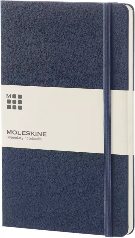 Suositussa Moleskinen kovakantisessa Classic-muistikirjassa (koko L, 13x21 cm) on kartonkinen kansi, pyöristetyt kulmat, happovapaata paperia olevat sivut, kirjanmerkki ja elastinen suljin. Ensimmäisellä sivulla on häviämisilmoitus, johon voi myös kirjata löytöpalkkion. Takakannessa on avattava sisätasku, joka sisältää Moleskinen historiaa. Taskussa voidaan säilyttää irtonaisia papereita ja muistiinpanoja. 240 norsunluunväristä tavallista sivua. Saatavana useita tyylikkäitä ja kirkkaita värivaihtoehtoja.