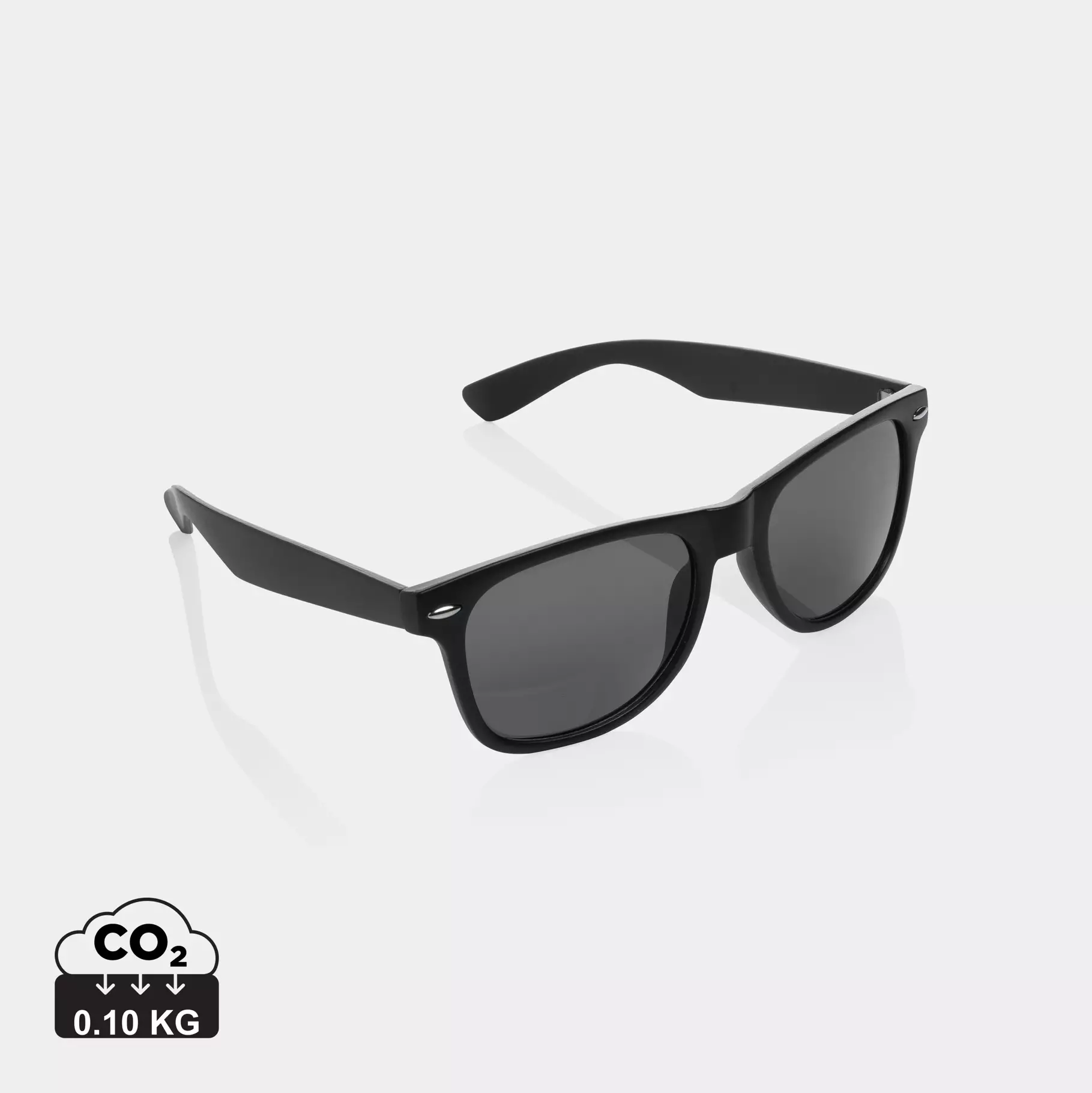 Korkealaatuiset aurinkolasit, joiden kehys on valmistettu kierrätetystä ja GRS-sertifioidusta PC:stä. Kierrätetyn materiaalin määrä kehyksessä on 100%. Kierrätetyn materiaalin kokonaismäärä: 65% perustuen tuotteen painoon. GRS-sertifiointi varmistaa kierrätysmateriaalien täydellisen sertifioidun toimitusketjun. Linssit ovat smokey-akryylia ja UV 400 sekä CAT 3 mukaisia. Pakattu kraft-lahjarasiaan. Merkkaustapa: silkkipainatus sankaan