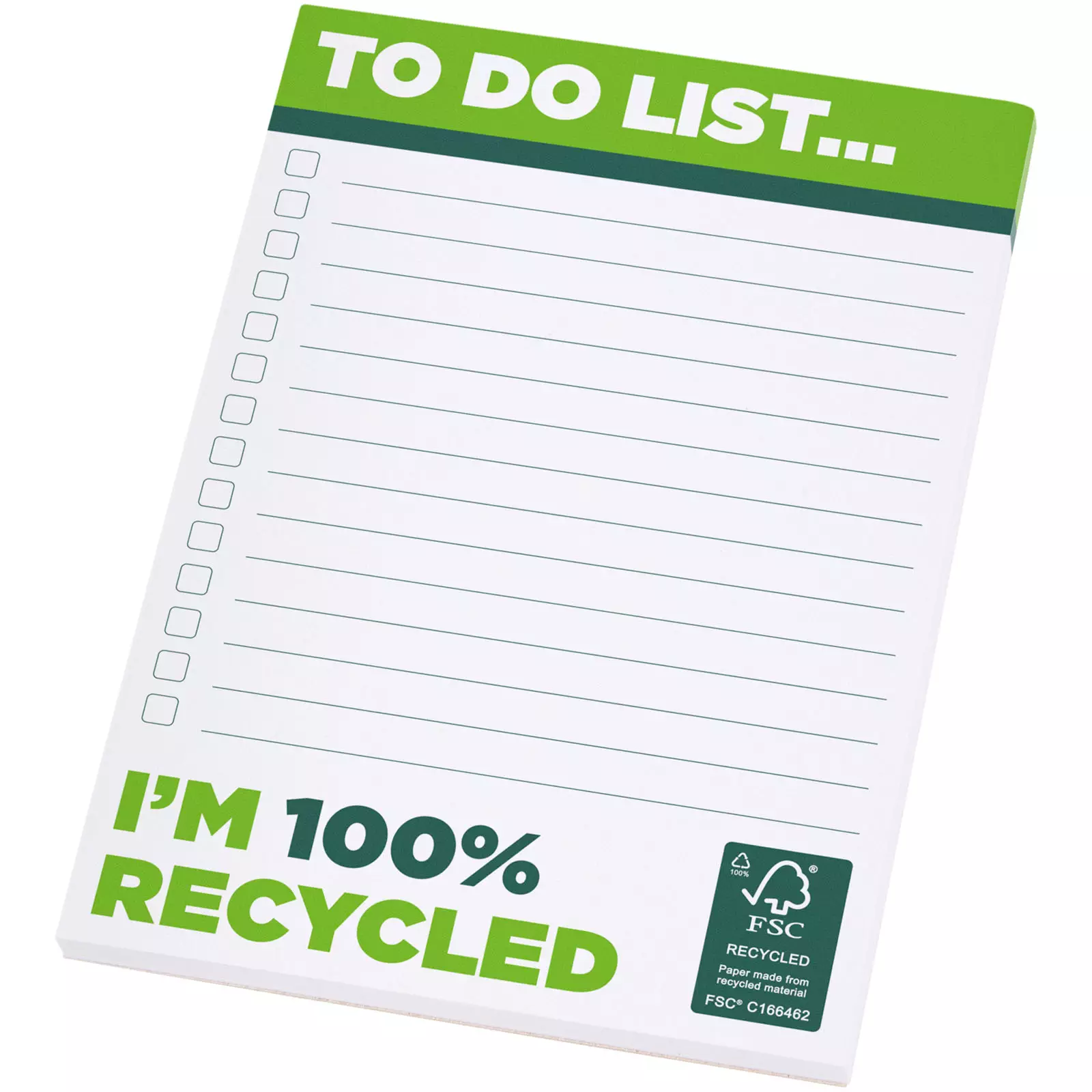 A6-kokoinen Desk Mate lehtiö on valmistettu kierrätyspaperista. Saatavilla 25, 50 tai 100 sivuisena. 80 g/m2 kierrätyspaperia. Täysi väriprintti on saatavilla kaikille arkeille. Mitat: 14,8 x 0,6... Lue lisää