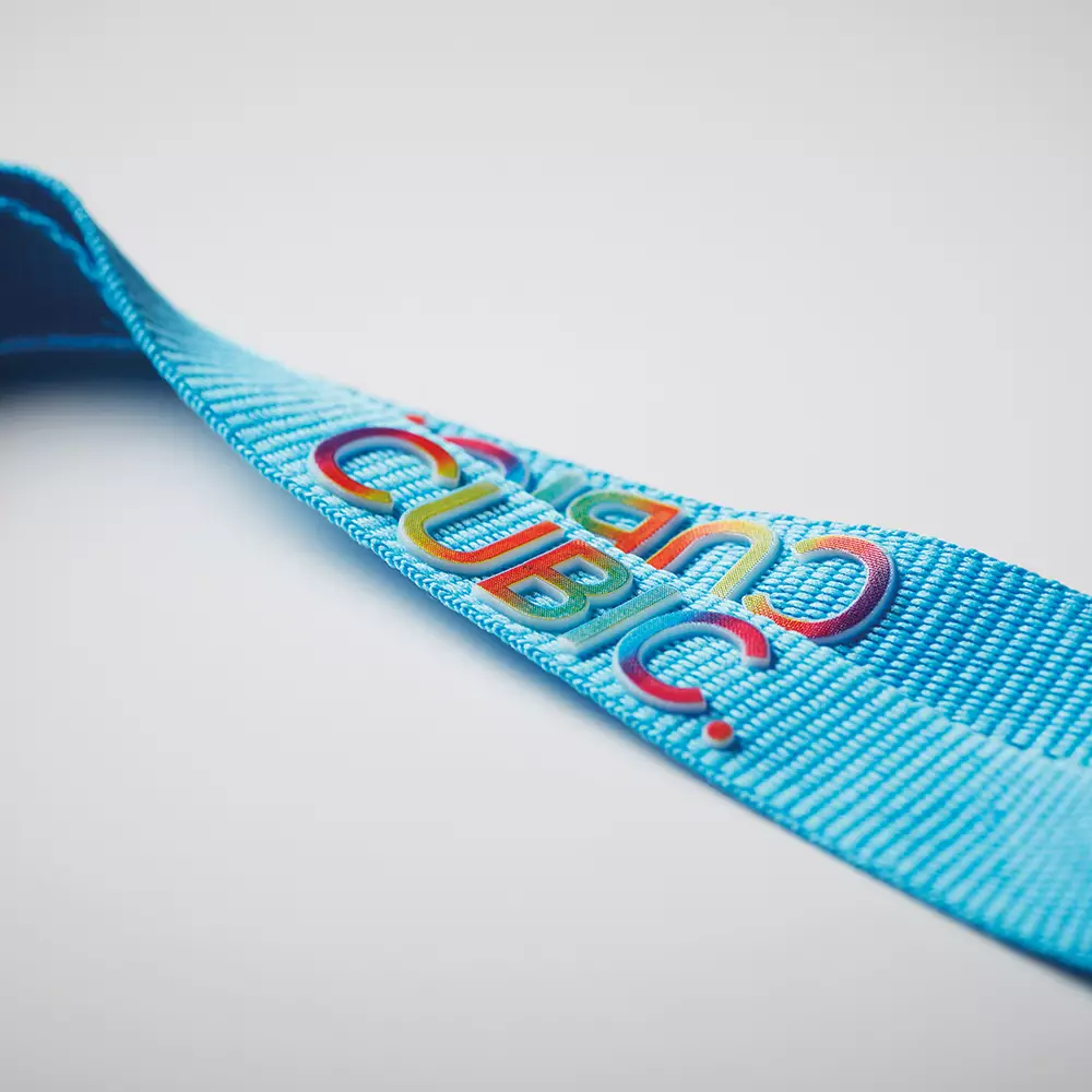 3D-painetuun kaulanauhaan tehdään kolmiuloitteinen painatus haluamallasi värillä ja kuviolla/tekstillä.