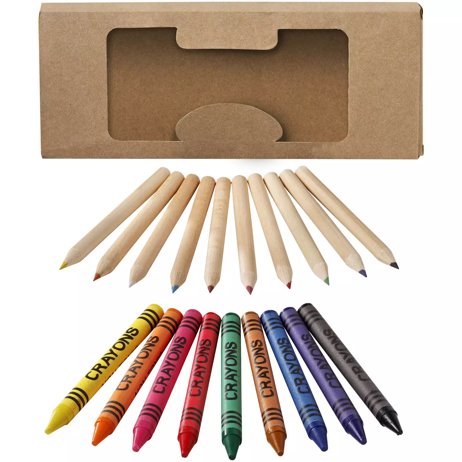9 värivahaliitua ja 10 värikynää pahvilaatikossa, jossa on muovi-ikkuna. Painatus ei mahdollinen eri osiin.
