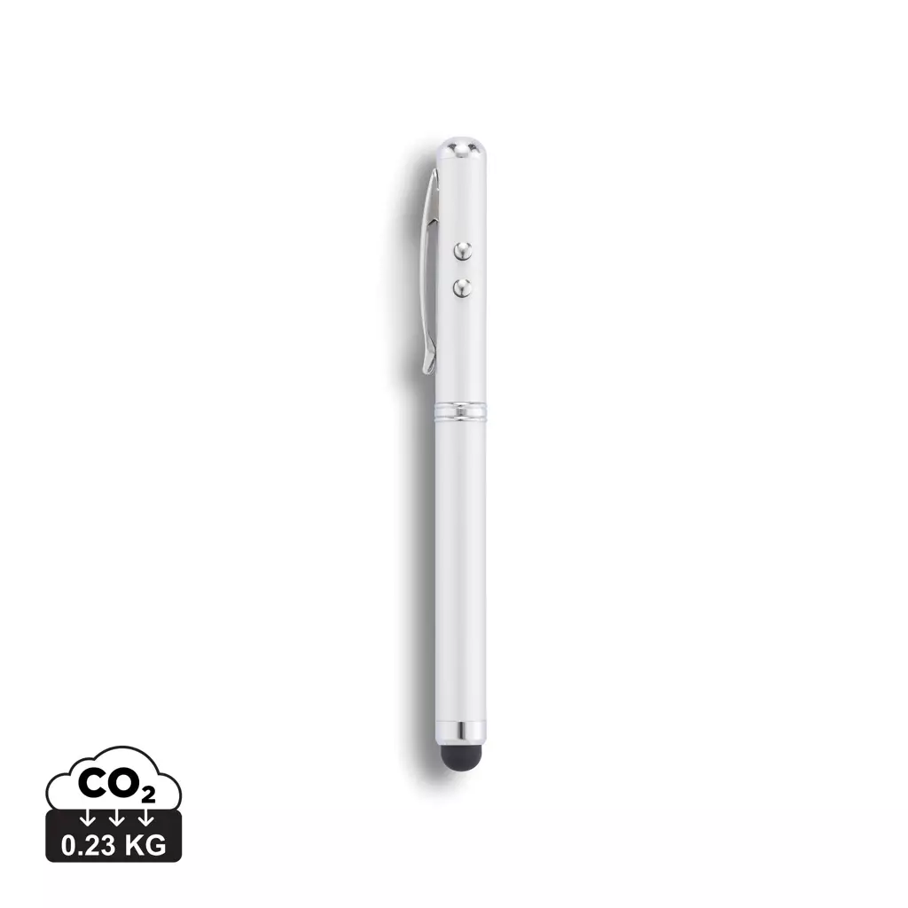Laadukas monitoimi kynä on valmistettu messingistä. Kynässä on laserosoitin, taskulamppu ja kosketuskärki kosketusnättöjä varten. Toimii kolmella nappiparistolla Musta muste Merkkaustapa: laserkaiverrus tai tampopainatus Minimi tilausmäärä 25 kpl