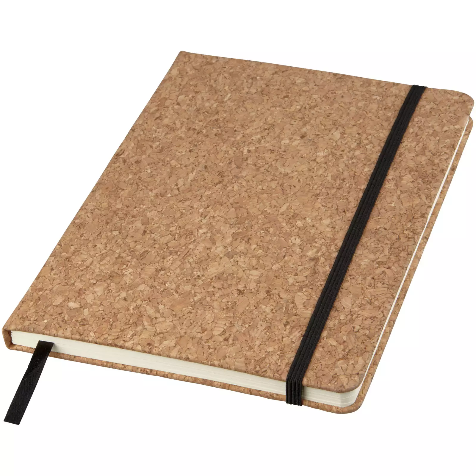 A5-kokoisessa Napa muistivihkossa on korkkikansi ja musta kuminauha kiinnitys sekä lukunauha.
