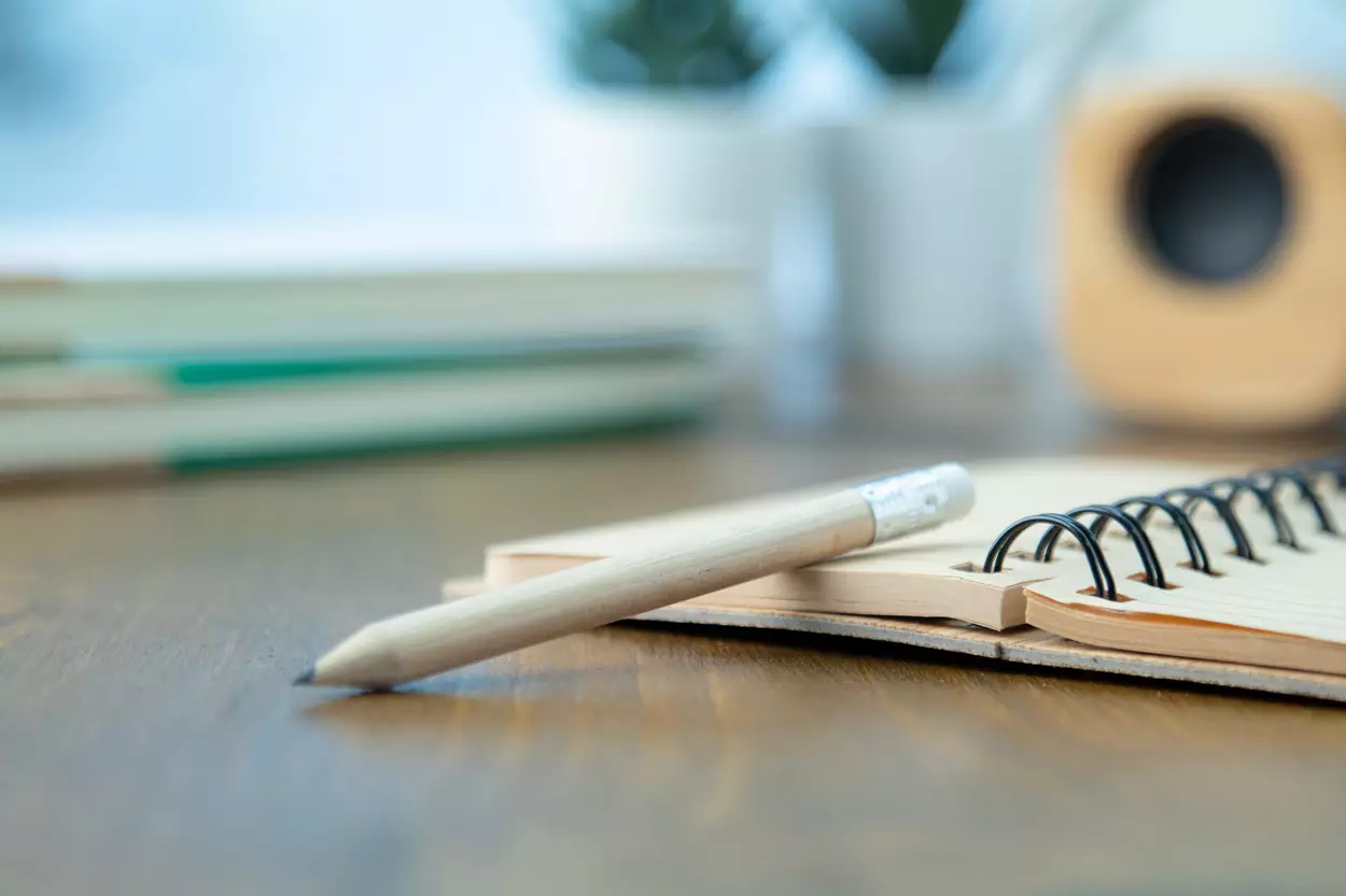 Pyöreä puinen lyijykynä on saatavissa puunvärisenä.