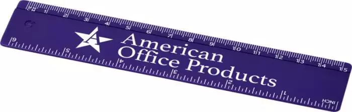 Muovinen viivoitin, jossa sekä sentit että tuumat (mitat painetaan vain merkattuun tuotteeseen). Merkkaustapa: digitaalinen painatus