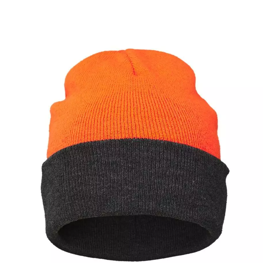 Käännettävän Beastie Hunter Reverse pipon toinen puoli on kokonaan harmaa ja toinen puoli harmaa/oranssi.