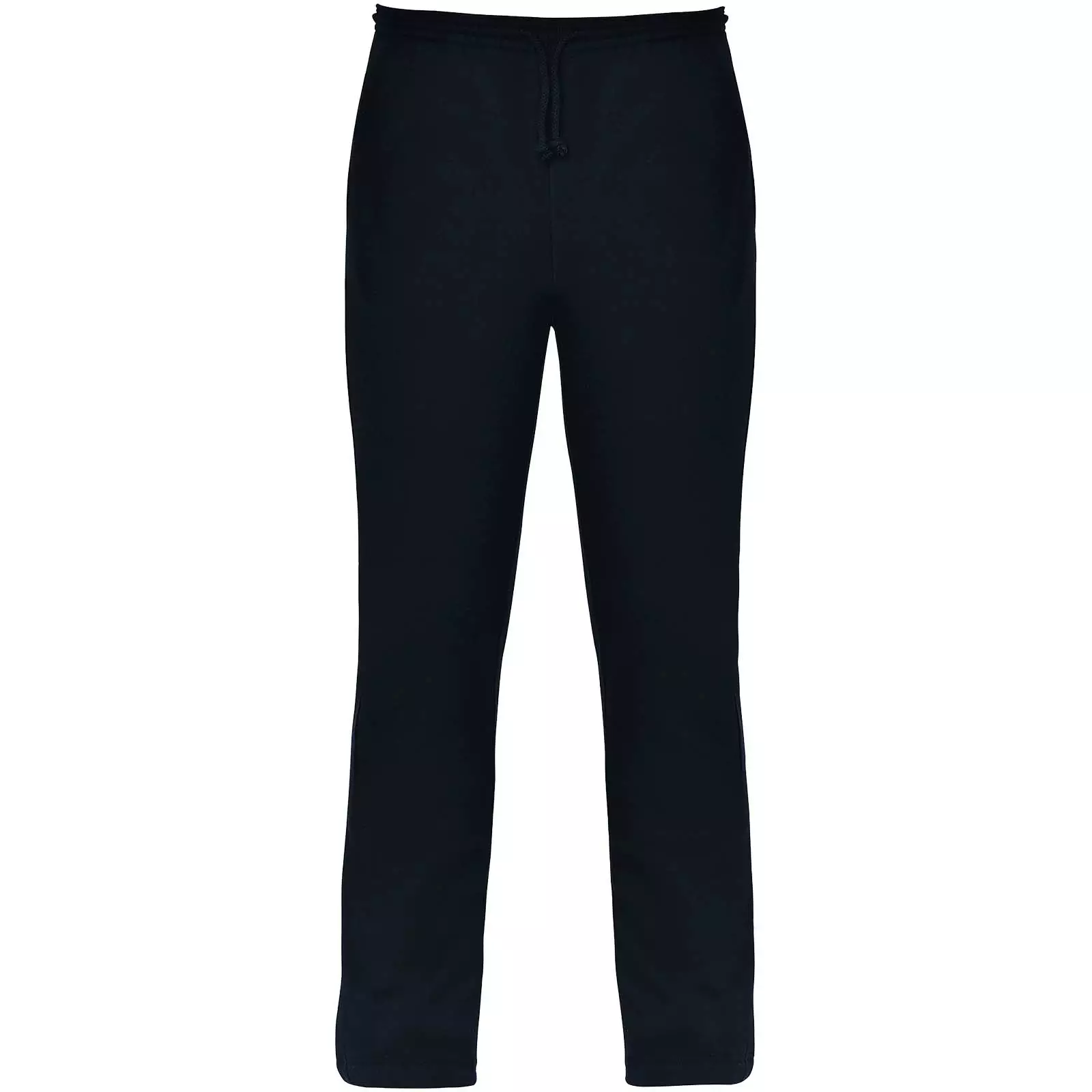 Suoralahkeiset housut, joissa kaksi sivutaskua ja säädettävä kiristyskuminauha vyötäröllä.