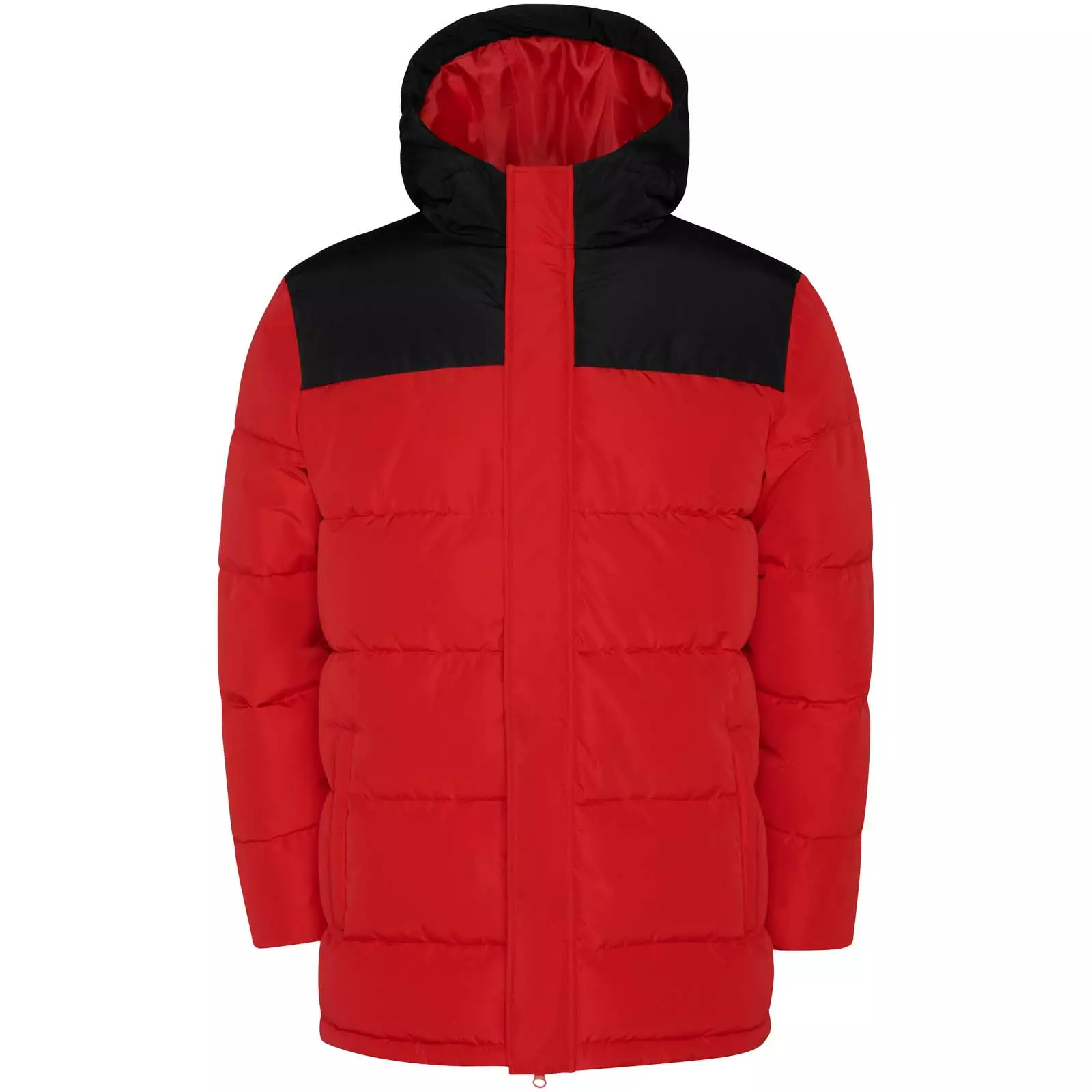Topattu takki kiinteällä hupulla. Edessä vetoketju, jonka yllä napitus. Leukasuoja. Kaksi vetoketjullista sivutaskua. Joustavat hihansuut.