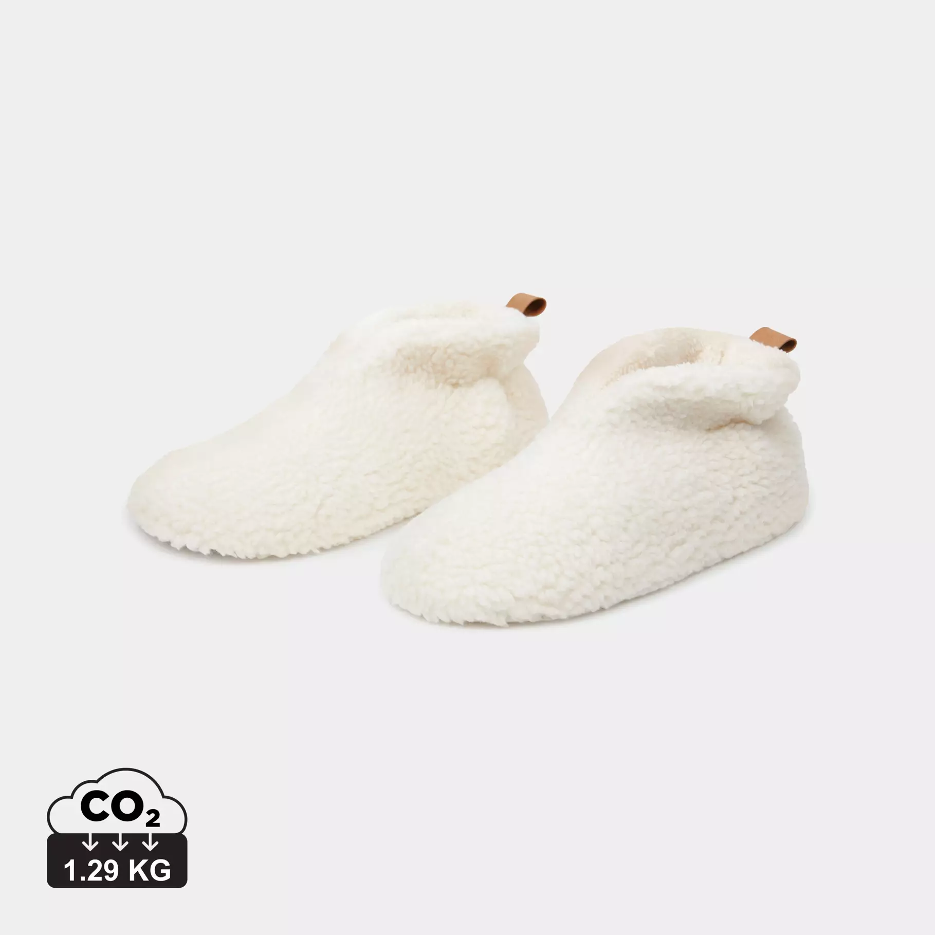 Mukavat ja ihanan pehmoiset teddykarvaiset tohvelit on valmistettu kierrätysmateriaalista. Tohvelin takana oleva joustinnauha varmistaa hyvän istuvuuden. Saatavilla kahdessa koossa: S/M vastaa kokoa 36–40 ja L/XL vastaa kokoa 41–45. Tuotteen kokonaispainosta 38 % on RCS-sertifioitua kierrätysmateriaalia. Logomerkkaus personoidulla vyötteellä pakkauksen ympärille. Minimi tilausmäärä logolla 10kpl