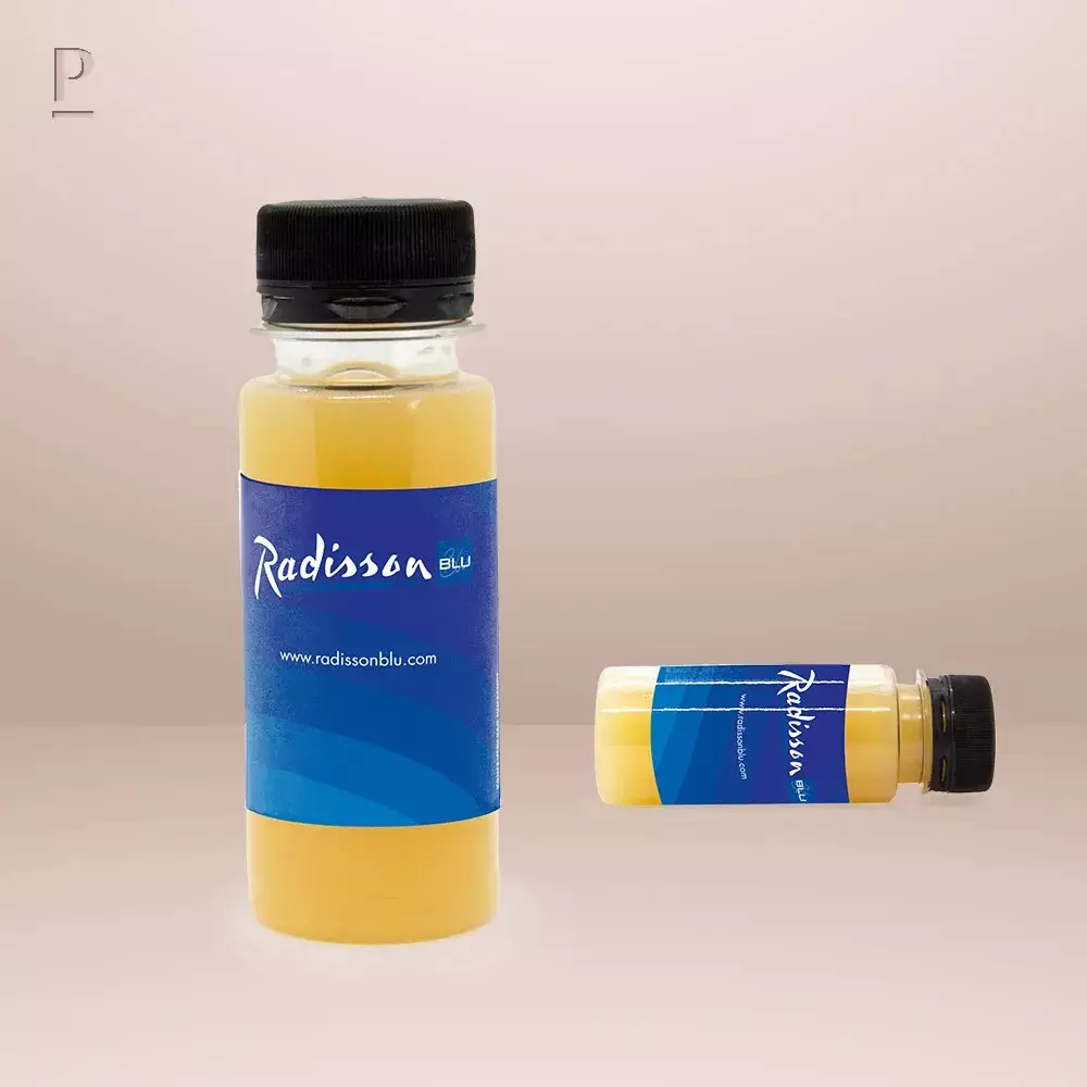 Pullo merkataan laadukkaalla monivärisellä CMYK painatuksella. Omalla etiketilläsi varustettu inkiväärishotti on pirteä ja energinen muistutus brändistäsi. Moderni ja terveellinen profiilituote, joka osoittaa, että välität hyvinvoinnista.
