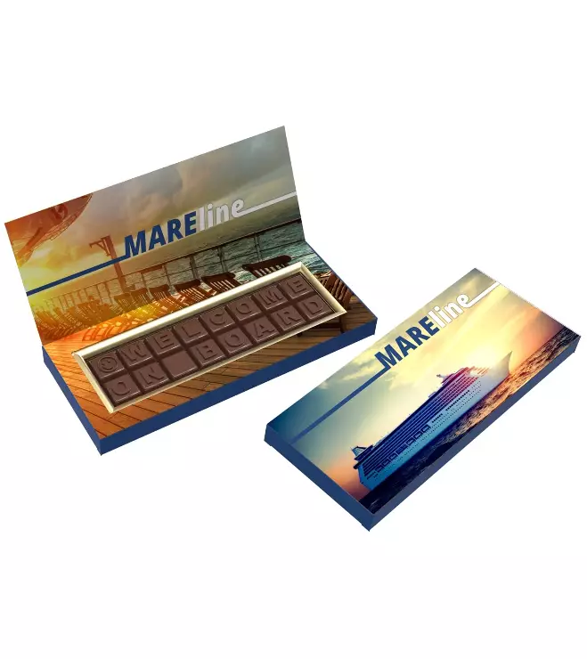 Suklaa pakattu kannelliseen rasiaan, joka voidaan merkata kauttaaltaan digipainatuksella.