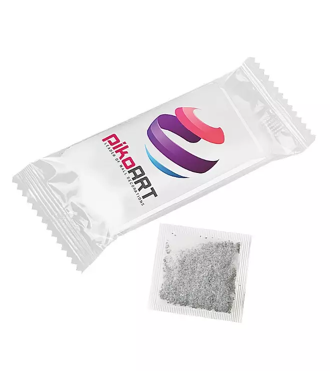 Pussillinen maukasta Earl Grey -teetä pakattuna flowpack tyyliseen pakkaukseen.